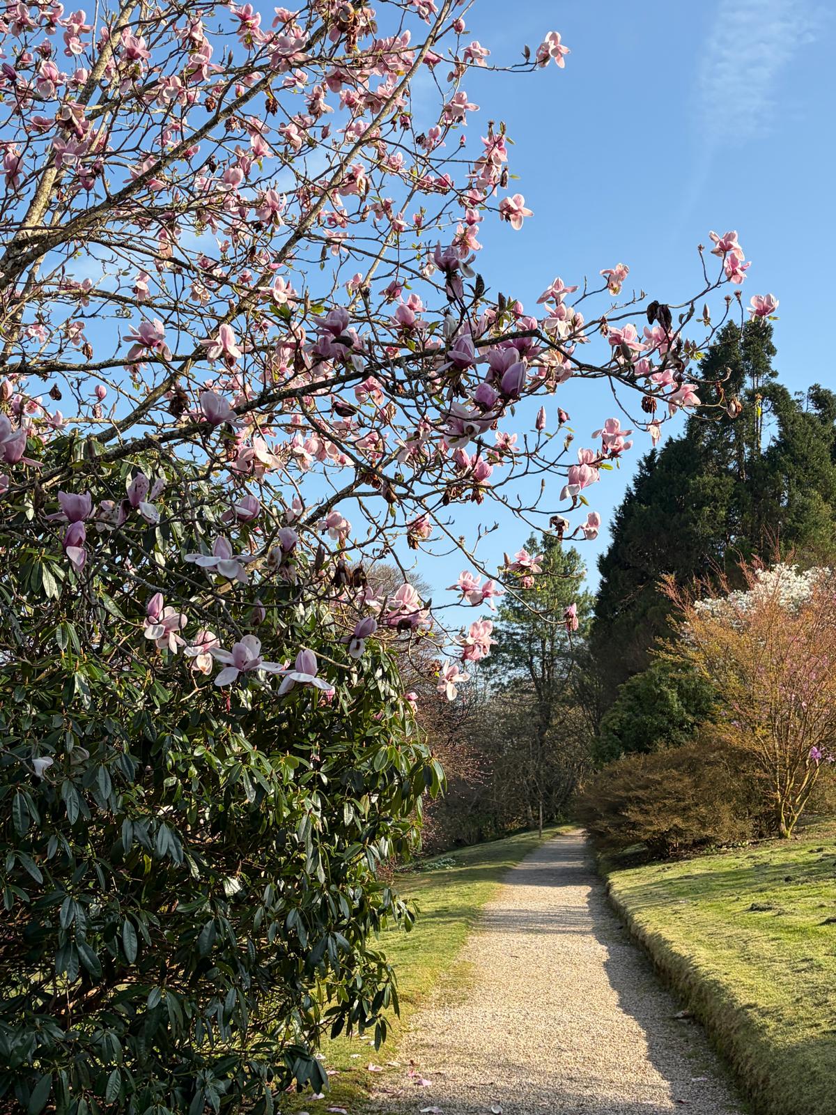 Right now is a spectacular time to visit Lanhydrock House and Estate - just about 20 mins from Treworgey. This is a beautiful house with huge , old magnolias and rhododendrons in the outer parts of the formal gardens. In March, April, these are in full bloom and looking magnificent.