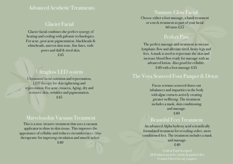 "Spa treatments, well definitely don't book one treatment! With Cheryl's expertise and wonderful relaxing treatments you will definitely want more! However maybe I shouldn’t say or she will be totally booked up when we come!"